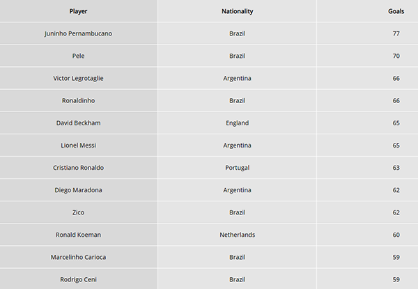 Ghi bàn thắng tuyệt đẹp ở trận Al-Nassr thắng Al-Fayha tại Saudi League, Cristiano Ronaldo đã áp sát thành tích lập công trên chấm sút phạt trực tiếp của Messi và David Beckham. |