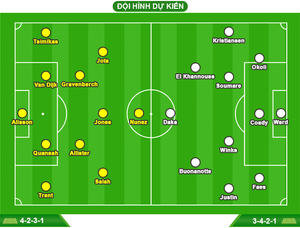 - LEICESTER: Vắng Ricardo Pereira, Wilfred Ndidi và Abdul Fatawu do chấn thương; khả năng ra sân của Jamie Vardy và Mads Hermansen còn bỏ ngỏ