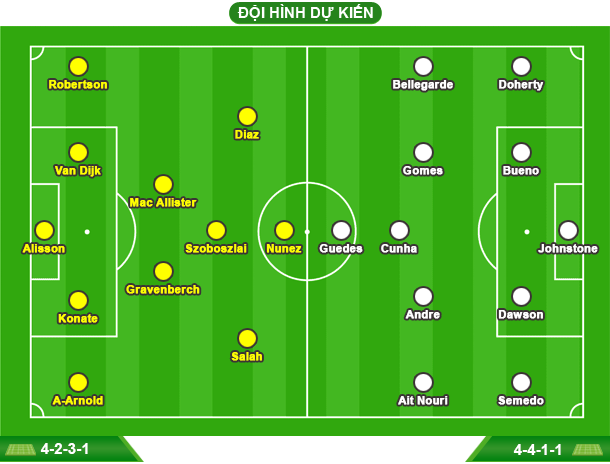 LỰC LƯỢNG - LIVERPOOL: Vắng Curtis Jones (treo giò) và Joe Gomez (chấn thương). - WOLVES: Vắng Yerson Mosquera, Boubacar Traore, Enso Medina, Sasa Kalajdzic, Jorgen Larsen và Hwang Hee-chan (chấn thương). PHONG ĐỘ VÀ ĐỐI ĐẦU - Liverpool bất bại 20 vòng đấu gần nhất ở Premier League (thắng 14, hòa 6). - Wolves chỉ thắng 1/6 vòng đấu gần nhất ở Premier League (thắng 1, hòa 1, thua 4). - Liverpool thắng 12/14 màn đụng độ Wolves gần nhất trên mọi đấu trường (thắng 12, hòa 1, thua 1). Trong 7 màn tiếp đón Wolves gần nhất, The Reds đều bất bại (thắng 6, hòa 1). ![]() Ở loạt trận sớm vòng 25 Premier League tối qua, Arsenal đã giành chiến thắng 2-0 trên sân của Leicester. Với kết quả này, Pháo thủ đã thu hẹp cách biệt với đội đầu bảng Liverpool xuống còn 4 điểm. Chiến thắng của thầy trò Mikel Arteta tại King Power đã gây áp lực không nhỏ lên Liverpool ở trận đấu tối nay khi họ tiếp đón Wolves tại sân nhà Anfield. Liverpool cần giành chiến thắng để tái lập khoảng cách 7 điểm trong cuộc đua vô địch. Nhìn bảng xếp hạng, đây là mục tiêu không quá khó với thầy trò Arne Slot bởi đối thủ của họ, Wolves đang đứng thứ 17 trên BXH với vỏn vẹn 19 điểm, chỉ hơn 2 điểm so với nhóm cầm đèn đỏ. Tuy vậy, vấn đề khiến Liverpool lo lắng nhất là lịch thi đấu. Trận đấu bù vòng 15 Premier League giữa tuần qua với Everton đã bắt đầu giai đoạn khó khăn của The Reds khi họ phải thi đấu 5 trận liên tiếp ở Premier League trong vòng 14 ngày (từ 12 đến 26/2). Chỉ ít ngày sau màn tiếp đón Wolves, Liverpool sẽ gặp Aston Villa ở trận đấu sớm vòng 29. BTC đã đẩy sớm trận đấu này để thầy trò Arne Slot tham dự trận chung kết Carabao Cup vào ngày 16/3. Sau đó, đội bóng thành phố cảng sẽ tiếp tục đối mặt 2 đối thủ khó nhằn là Man City (23/2) và Newcastle (26/2). Trước lịch thi đấu ác mộng, Liverpool đã khởi đầu không tốt khi bị Everton cầm hòa 2-2. Trận đấu này đã diễn ra rất nóng, buộc trọng tài phải rút 4 thẻ đỏ ở thời điểm cuối trận. Điều quan trọng là The Reds đã không thể gia tăng cách biệt với Arsenal lên 9 điểm như kì vọng. HLV Arne Slot không giấu nổi sự thất vọng về kết quả hòa tại Goodison Park, nhất là khi đội bóng của ông vừa bị Plymouth Argyle loại ở cúp FA. Hơn bao giờ hết, Liverpool cần 1 chiến thắng để lấy lại tôn nghiêm. ![]() Thầy trò Arne Slot phải thi đấu liên tiếp 5 trận ở EPL trong vòng 14 ngày Cũng may cho Arne Slot là ở giai đoạn khó khăn này, Liverpool có lực lượng gần như tốt nhất. Họ chỉ mất 2 cầu thủ là Joe Gomez (chấn thương) và Curtis Jones (treo giò). Salah, Diaz và các ngôi sao quan trọng nhất đều sẵn sàng ra sân với mục tiêu cao nhất là 3 điểm. Ở trận derby Merseyside vừa qua, HLV Arne Slot đã bị trọng tài phạt thẻ đỏ. Sau đó, ông bị BTC cấm 2 trận chỉ đạo. Nhưng do vẫn còn thời hạn kháng cáo nên nhà cầm quân người Hà Lan vẫn được chỉ đạo Liverpool ở trận tiếp Wolves tối nay. Về phong độ, dù vừa bị Everton cầm hòa nhưng Liverpool vẫn vượt trội Wolves. Tính từ trận thua Nottingham Forest hồi tháng 9 năm ngoái, The Reds đã thiết lập chuỗi 20 trận bất bại ở Premier League (thắng 14, hòa 6). Trong khi đó, Wolves chỉ thắng 1/6 vòng đấu gần đây (thắng 1, hòa 1, thua 4). Arne Slot không thể chủ quan bởi Wolves đang rất cần điểm để bứt khỏi khu vực nguy hiểm trong cuộc chiến trụ hạng. Tinh thần ấy đã được Bầy sói thể hiện ở vòng đấu gần nhất khi họ đánh bại Aston Villa 2-0. Wolves đang gặp khó khăn trong cuộc chiến trụ hạng nhưng được đánh giá cao với lối chơi tấn công khó lường. Họ đã ghi 34 bàn thắng ở Premier League mùa này. Trong đó, riêng Matheus Cunha đã in dấu giày trong 15 bàn thắng (11 bàn, 4 kiến tạo). Ở 4 trận sân nhà gần nhất thuộc Premier League, Liverpool đã để lọt lưới 6 lần. Nếu chủ quan, The Reds hoàn toàn có thể sẽ phải trả giá. Tuy nhiên, vấn đề lớn nhất của Wolves là hàng thủ. Sau 24 vòng đấu, họ đã để lọt lưới 52 lần, chỉ ít hơn 2 đội bóng đang đứng trong nhóm cầm đèn đỏ là Southampton (57) và Leicester (55). Cũng bởi vậy, ở 5 vòng đấu gần nhất, Bầy sói đã phải nhận 4 thất bại. ![]() Liverpool đã thắng 12/14 màn đụng độ Wolves gần nhất trên mọi đấu trường Đặc biệt, trong 6 chuyến làm khách gần nhất ở Premier League, Wolves đã có tới 5 trận để lọt lưới ít nhất 2 bàn. Kết quả, họ đã 4 lần ra về với 2 bàn tay trắng. Ngược lại, Liverpool đã ghi ít nhất 2 bàn ở 16/17 vòng đấu gần nhất ở Premier League. Với hàng công đã ghi 58 bàn, Liverpool vẫn là nỗi khiếp sợ với thầy trò Vítor Pereira. Đừng quên rằng trong 14 màn đụng độ Bầy sói gần nhất trên mọi đấu trường, The Reds đã 12 lần ca khúc khải hoàn. Rất khó để Wolves tạo nên bất ngờ ở Anfield tối nay. DỰ ĐOÁN: Liverpool thắng 3-1 ![]() KẾT QUẢ VÀ LỊCH THI ĐẤU VÒNG 25 PREMIER LEAGUE
