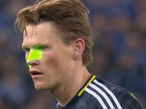 Cựu tiền vệ Man Utd, Scott McTominay đã bị chiếu tia laser vào mắt trong lúc làm nhiệm vụ ĐTQG. |