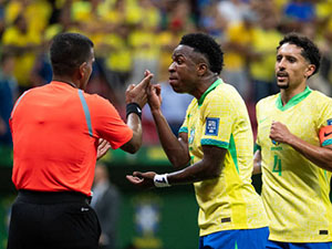 Tranh cãi với trọng tài và câu giờ trong trận Brazil thắng Colombia, Vinicius đã khiến Raphinha và Matheus Cunha vô cùng tức giận. |