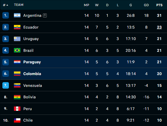 ![]() Diaz tỏa sáng nhưng chưa đủ để Colombia giành chiến thắng Ở lượt trận thứ 14 vòng loại World Cup 2026 khu vực Nam Mỹ, Colombia khởi đầu không thể thuận lợi hơn khi tiếp đón Paraguay. Ở ngay phút thứ nhất, trong đợt tấn công đầu tiên của Colombia, Luis Diaz đã sút tung lưới đối thủ. Bàn thắng sớm của Diaz đã kích thích tinh thần thi đấu cho đoàn quân của HLV Lorenzo. 12 phút sau, ngôi sao của Liverpool tiếp tục gây ấn tượng với pha kiến tạo thuận lợi để Jhon Duran nhân đôi cách biệt cho đội bóng áo vàng. Nhập cuộc hưng phấn là vậy nhưng Colombia vẫn không thể đánh bại Paraguay. Đội khách đã phản ứng mạnh mẽ sau 2 bàn thua chóng vánh. Cầm bóng ít nhưng Paraguay lại dứt điểm nhiều gấp đôi Colombia, 21 so với 10. Nỗ lực tấn công của Paraguay đã được đền đáp bằng bàn rút ngắn tỉ số ở phút bù giờ của hiệp 1. Tận dụng tình huống đá phạt góc, Junior Alonso đánh đầu tung lưới Colombia. Tinh thần của Paraguay được đẩy lên cao sau bàn gỡ. Lối chơi tấn công giàu tốc độ của đội khách đã gây ra nhiều khó khăn cho hàng thủ Colombia. Phút 62, Julio Enciso quân bình tỉ số 2-2 cho Paraguay với cú sút rất căng từ ngoài vòng cấm. ![]() Sự thất vọng của Diaz sau tiếng còi mãn cuộc Trong 30 phút còn lại, cả 2 đội đều tạo ra những cơ hội tốt nhưng không thể tận dụng nên buộc phải chấp nhận chia điểm. Ở thời điểm cuối, diễn biến trên sân rất căng thẳng khi cầu thủ 2 bên không ngại va chạm. Trọng tài đã phải rút ra tới 6 tấm thẻ vàng chỉ trong hơn 10 phút cuối trận. Rơi chiến thắng lãng xẹt, Colombia đã bỏ lỡ cơ hội vượt qua chính Paraguay. Diaz và đồng đội vẫn dậm chân ở vị trí thứ 6 trên BXH. Theo quy định của FIFA, top 6 vòng loại Nam Mỹ được vào thẳng VCK World Cup 2026, còn đội xếp thứ 7 sẽ tham dự play-off liên lục địa để tranh vé vớt. Ở trận đấu này, nhạc trưởng Colombia, James Rodriguez đá chính nhưng chơi mờ nhạt trước khi bị rút ra ở phút 60. Dù đã qua đỉnh cao nhưng cựu sao Real Madrid vẫn là nhân tố quan trọng trong chiến dịch vòng loại World Cup của Colombia. Anh đã đóng góp 2 bàn và 5 kiến tạo. KẾT QUẢ LƯỢT TRẬN 14 VÒNG LOẠI WORLD CUP 2026 KHU VỰC NAM MỸ