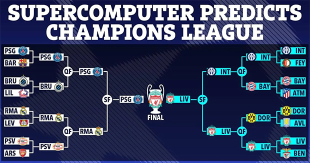 Theo dự đoán của máy tính, PSG và Liverpool là 2 đội bóng sẽ giành vé vào chung kết Champions League mùa này.