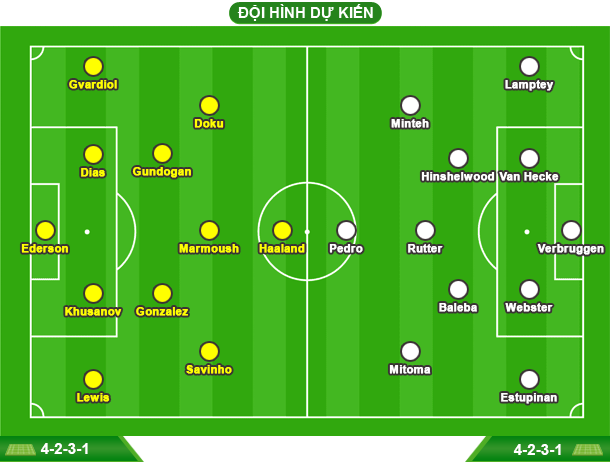 LỰC LƯỢNG - MAN CITY: Vắng Rodri, Nathan Ake, Manuel Akanji, Johns Stones và Oscar Bobb do chấn thương - BRIGHTON: Vắng Ferdi Kadioglu, Igor Julio, James Milner, Joel Veltman, Jason Steele, Lewis Dunk và Matt O'Riley do chấn thương PHONG ĐỘ VÀ ĐỐI ĐẦU - Man City thắng 3 và thua 3 sau 6 trận gần nhất trên các đấu trường - Brighton thắng 6 trận gần nhất trên các đấu trường - Man City thắng 7/10 trận đối đầu gần nhất với Brighton ![]() Man City cần trở lại sau trận thua Nottingham vào cuối tuần trước Cuộc đọ sức giữa Man City và Brighton được coi là 1 trong những cặp đấu tâm điểm vòng 29 Premier League. Sau khi thua trận lượt đi 1-2 tại Amex cách đây 4 tháng, đây là cơ hội để The Citizens phục thù. Nếu thắng, đoàn quân của Pep Guardiola nhiều khả năng sẽ vươn lên top 4 vì vòng này Chelsea phải làm khách của Arsenal. Vòng trước, Man City đã lỡ cơ hội ngoi lên top 3 sau khi để thua Nottingham với tỉ số tối thiểu. Trận đấu tại City Ground không có nhiều điểm nhấn ngoại trừ pha lập công của Callum Hudson-Odoi ở gần cuối trận. Vì thất bại này, The Citizens bị Chelsea đẩy tụt xuống vị trí thứ 5. Với 47 điểm sau 28 vòng đấu, Man City kém Chelsea 2 điểm nhưng cũng chỉ hơn 1 điểm so với đội xếp thứ 7 Brighton. Hiếm khi cuộc đua top 4 Premier League lại khốc liệt như mùa giải này. Khó khăn đến mức Pep Guardiola phải thừa nhận 10 vòng còn lại giống như 10 trận chung kết với nhà ĐKVĐ. Sau khi bị Real Madrid loại khỏi Champions League, top 4 là mục tiêu chính của Man City trong phần còn lại của mùa giải. Brighton là thử thách đầu tiên trong 10 trận ‘chung kết’ mà Pep nói, nhưng xem ra rất khó nhằn vì đoàn quân của Fabian Hurzeler đang ở giai đoạn thăng hoa. Không quá khi nói rằng Brighton là đội có phong độ tốt nhất Premier League ở thời điểm này. Sau trận thua tủi hổ 1-7 Nottingham vào đầu tháng 2, The Seagulls đã thắng 6 trận liên tiếp, trong đó có 4 trận Premier League. Nhờ chuỗi thắng này, thầy trò Hurzeler đã chen chân vào cuộc đua top 4 vốn đang rất chật chội và khắc nghiệt. Không chỉ đang thăng hoa, Brighton còn có phong độ rất ấn tượng trên sân khách, chỉ thua 2 trong 11 trận gần nhất. Nhưng điều đó không có nghĩa Brighton sẽ tự tin hành quân đến Etihad vì sân đấu này vốn là nỗi ám ảnh với họ. Trong lịch sử 14 lần làm khách tại đây, The Seagulls chưa từng biết mùi chiến thắng, thua 12 và hòa 2. ![]() Foden và De Bruyne có duyên với mành lưới Brighton Chuyến viếng thăm Etihad đêm nay sẽ khó khăn gấp bội cho Brighton vì Man City coi đó là chung kết và muốn phục thù thất bại ở lượt đi. Do đây là trận cuối cùng trước kì nghỉ quốc tế nên Pep có thể tung những quân bài tốt nhất mà không cần phải toan tính về việc xoay tua lực lượng. Hàng thủ Man City vẫn mất 3 trụ cột là Nathan Ake, Manuel Akanji và Johns Stones, nhưng Pep vẫn đủ quân số để lựa chọn sau khi được bổ sung vào tháng 1. Đắn đó lớn nhất của Pep là vị trí hậu vệ phải khi ông đang cân nhắc sử dụng Rico Lewis hoặc kéo tiền vệ Matheus Nunes xuống. Trên hàng công, Phil Foden và Kevin De Bruyne nhiều khả năng xuất phát ngay từ đầu vì có duyên với mành lưới của Brighton. Foden đã ghi 8 bàn vào lưới The Seagulls, nhiều hơn bất kì đội nào khác trong sự nghiệp. Trong khi đó, De Bruyne đã in dấu giày vào 5 bàn trong 4 trận gần nhất tiếp đội bóng từ bờ biển phía Nam nước Anh. Bên phía Brighton cũng đang hứng chịu tổn thất lớn về lực lượng với 7 ca chấn thương, trong đó 2 hậu vệ trụ cột phải ngồi ngoài là Joel Veltman và Lewis Dunk. Hàng thủ thiếu chắc chắn này của Brighton là cơ sở để tin rằng Haaland và đồng đội sẽ mang về chiến thắng cho Man City. DỰ ĐOÁN: Man City thắng 4-0 ![]() LỊCH THI ĐẤU VÒNG 29 PREMIER LEAGUE