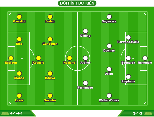 LỰC LƯỢNG - MAN CITY: Vắng Oscar Bobb, Rodri, Kevin De Bruyne, Kyle Walker, Jack Grealish và Jeremy Doku (chấn thương). - SOUTHAMPTON: Vắng Gavin Bazunu, Ross Stewart, Will Smallbone (chấn thương) và Ryan Fraser (treo giò); Khả năng ra sân của Yukinari Sugawara còn bỏ ngỏ. PHONG ĐỘ VÀ ĐỐI ĐẦU - Man City là đội duy nhất chưa thua ở Premier League mùa này (thắng 6, hòa 2). - Southampton là 1 trong 4 CLB chưa thắng ở Premier League mùa này (hòa 1, thua 7). - Man City bất bại trong 6 màn đụng độ Southampton gần nhất ở Premier League (thắng 4, hòa 2). ![]() Sau vòng 8, Man City đã trở thành CLB duy nhất chưa thua ở Premier League mùa này. Tuy vậy, với 20 điểm trong tay (thắng 6, hòa 2), thầy trò Pep Guardiola đang đứng thứ 2 trên BXH, kém 1 điểm so với đội đầu bảng Liverpool. Ở vòng 9 cuối tuần này, Liverpool và Arsenal sẽ đụng độ trực tiếp tại Emirates. Đây là cơ hội không thể tốt hơn để Man City tạo nên cú bứt phá trong cuộc đua vô địch. Ít nhất, thầy trò Guardiola sẽ có 1 ngày dẫn đầu BXH nếu đánh bại Southampton ở trận đấu tối nay. Đây là mục tiêu không khó với Man City bởi trước mắt họ là cặp đấu chênh lệch nhất ở vòng 9 Premier League. Trong khi The Citizens đang đứng thứ 2 trên BXH với chiến tích bất bại thì Southampton lại đứng áp chót với vỏn vẹn 1 điểm. Họ chỉ hơn đội bét bảng Wolves nhờ hiệu số bàn thắng/bại. Đây là 1 trong 4 CLB chưa biết mùi chiến thắng ở Premier League mùa này (hòa 1, thua 7). Nếu tính cả giai đoạn cuối mùa giải 2022-23, chuỗi trận không thắng của Southampton ở Premier League đã nối dài lên con số 21. Sau 8 vòng đấu, The Saints mới chỉ 6 lần lập công và họ đang sở hữu hàng thủ tệ thứ 2 (18 bàn thua). Mùa giải mới chỉ ở giai đoạn khởi đầu nhưng thầy trò Russell Martin đã trở thành 1 trong những CLB có nguy cơ xuống hạng cao nhất. Rất khó để The Saints tạo nên sự khác biệt ở vòng 9 khi họ phải đụng độ thử thách lớn nhất ở giải đấu số 1 nước Anh. ![]() Southampton vẫn chưa biết mùi chiến thắng ở Premier League mùa này Như thừa nhận của Pep Guardiola, Man City chưa đạt phong độ tốt nhất như kì vọng. The Citizens rơi vào tình thế rất khó khăn khi mất nhạc trưởng Rodri tới hết mùa vì chấn thương ACL. Nhưng điều quan trọng là họ vẫn đang thể hiện phong độ tốt trên mọi đấu trường. Ở Premier League, sau 2 trận hòa Arsenal và Newcastle, Man City đã thắng liên tiếp 2 trận trước Fulham và Wolves. Ở Champions League, thầy trò Guardiola cũng đã vươn lên vị trí thứ 3 sau 2 trận hủy diệt Slovan Bratislava và Sparta Prague. Trước trận tiếp Southampton, đội bóng áo xanh thành Manchester đã thiết lập chuỗi 4 trận thắng liên tiếp. Với 19 bàn thắng, Man City đang sở hữu hàng công mạnh nhất Premier League. Họ đã ghi ít nhất 2 bàn ở 16/17 trận gần nhất ở giải đấu số 1 nước Anh. Tính cả mùa giải trước, đội bóng của Pep đã thiết lập chuỗi 31 trận bất bại ở giải đấu số 1 nước Anh. Nói như thế để thấy rằng dù chơi không tốt, Man City vẫn quá mạnh so với Southampton. Erling Haaland đã bùng nổ với 10 bàn thắng ở 5 vòng đấu đầu tiên. Nhưng ở 3 vòng đấu gần nhất, tiền đạo người Na Uy đều “tịt ngòi”. Trận tiếp Southampton tối nay là cơ hội để Haaland khai hỏa trở lại. Anh đã lấy lại cảm hứng sau cú đúp vào lưới Sparta Prague cách đây ít ngày. ![]() Đây là cơ hội để Man City vươn lên dẫn đầu BXH Premier League Về lực lượng, ngoài Rodri, Oscar Bobb, De Bruyne và Walker, Man City còn mất thêm 2 cầu thủ khác vì chấn thương là Grealish và Doku. Dù vậy, Pep Guardiola vẫn còn nhiều lựa chọn chất lượng để tiếp đón Southampton. Ở mùa giải gần nhất chạm trán Southampton tại Premier League (2022-23), Man City đã thắng cả 2 lượt trận, ghi 8 bàn và chỉ 1 lần để lọt lưới. Nhìn xa hơn, dàn sao The Citizens chỉ thua 1/14 màn đụng độ The Saints ở giải đấu số 1 nước Anh. Trước đối thủ như vậy, Southampton trở nên quá nhỏ bé. Không loại trừ khả năng họ sẽ phải nếm thất bại nặng nề trong chuyến viếng thăm Etihad. DỰ ĐOÁN: Man City thắng 4-0 ![]() KẾT QUẢ VÀ LỊCH THI ĐẤU VÒNG 9 PREMIER LEAGUE