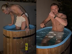 | Haaland hì hụi tắm nước đá giữa cái lạnh 8 độ C | ||