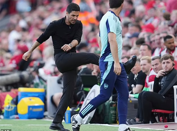 HLV Mikel Arteta không giấu nổi sự tức giận khi nói về màn trình diễn của Arsenal trong hiệp 1 trận đấu với Liverpool. |