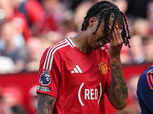 Trung vệ của Man Utd, Leny Yoro dường như đã khóc sau khi dính chấn thương trong trận thua West Ham. |