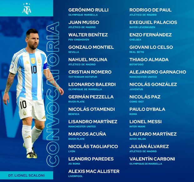 ![]() Messi trở lại ĐT Argentina sau khi bỏ lỡ đợt tập trung cách đây 1 tháng Cách đây 1 tháng, do dính chấn thương nên Lionel Messi đã bỏ lỡ 2 trận đấu vòng loại World Cup 2026 của đội tuyển Argentina. Nhưng ở đợt tập trung trong tháng 10 này, siêu sao từng giành 8 danh hiệu QBV đã trở lại. Anh lập tức được HLV Lionel Scaloni điền tên vào danh sách triệu tập. Thực tế, Messi đã trở lại thi đấu từ giữa tháng 9 với phong độ khá tốt. Anh đã ghi 3 bàn và đóng góp 1 kiến tạo qua 4 trận đấu ở MLS trong màu áo Inter Miami. Sự trở lại của Messi có ý nghĩa rất quan trọng với Argentina. Cách đây 1 tháng, khi thiếu vắng El Pulga, đội bóng xứ sở Tango đã để thua Colombia. Trận thua này đã khiến mạch bất bại trên mọi đấu trường của Albiceleste dừng lại ở con số 12. Dù vậy, Argentina vẫn đang dẫn đầu BXH vòng loại World Cup 2026 khu vực Nam Mỹ với 18 điểm sau 8 lượt trận. Dù đã 37 tuổi nhưng Messi vẫn là nhân tố rất quan trọng trong đội hình của HLV Scaloni. Với 109 bàn, El Pulga đang là chân sút vĩ đại nhất lịch sử đội tuyển Argentina. Anh cũng là cầu thủ khoác áo Albiceleste nhiều nhất (187 trận). Ở vòng loại World Cup 2026 khu vực Nam Mỹ, Lionel Messi đã ghi 3 bàn thắng, chỉ kém Darwin Nunez (5 bàn) trong top những chân sút xuất sắc nhất. Ngoài Messi, HLV Scaloni cũng triệu tập nhiều tên tuổi lớn trên hàng công như Paulo Dybala, Lautaro Martinez hay Julian Alvarez. Ngoài ra, phải kể tới các trụ cột ở các vị trí khác như Cristian Romero, Nicolas Otamendi, Lisandro Martinez, Nicolas Tagliafico, Leandro Paredes, Alexis Mac Allister, Rodrigo De Paul, Nicolas Gonzalez, Enzo Fernandez hay Alejandro Garnacho. Do dính án treo giò của FIFA nên thủ thành Emiliano Martinez không góp mặt trong đợt tập trung lần này của đội tuyển Argentina. Nhân tố mới đáng chú ý nhất được HLV Scaloni triệu tập là tiền vệ trẻ Nico Paz. Tài năng trẻ 20 tuổi đang khoác áo Como đã sẵn sàng ra mắt màu áo Albiceleste. Theo lịch, ở đợt tập trung trong tháng 10 này, Argentina sẽ thi đấu 2 trận vòng loại World Cup 2026 khu vực Nam Mỹ với Venezuela (10/10) và Bolivia (15/10). DANH SÁCH TRIỆU TẬP CỦA ĐỘI TUYỂN ARGENTINA ![]() |