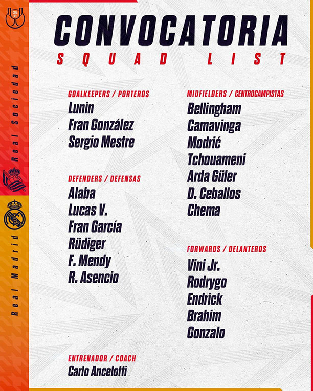 Real Madrid sẽ không có ba cầu thủ quan trọng ở trận lượt đi vòng bán kết cúp Nhà Vua gặp Sociedad, đặc biệt là Mbappe. |