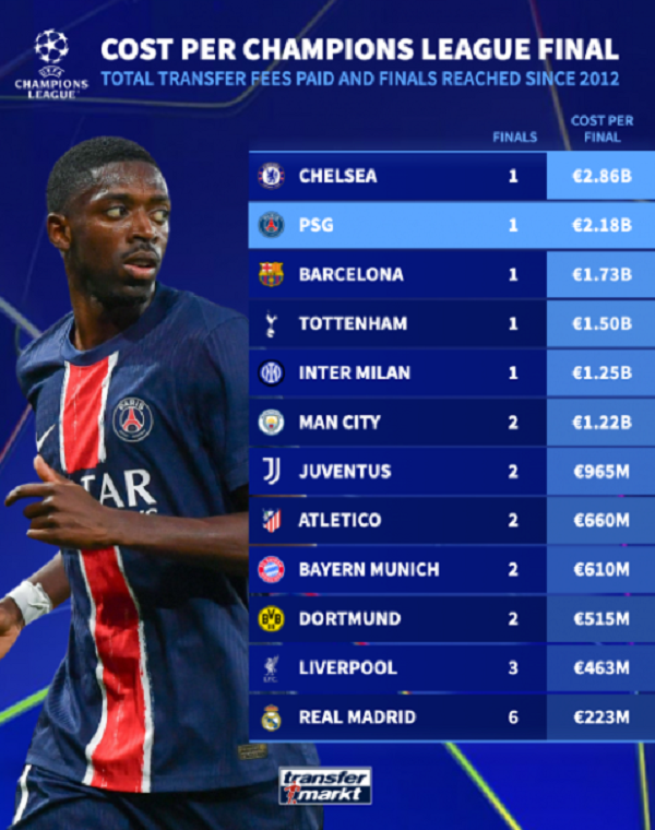 ![]() PSG chưa 1 lần nếm trải vinh quang ở Champions League Rạng sáng mai, ở lượt về vòng 1/8 Champions League, PSG sẽ viếng thăm sân Anfield của Liverpool. Trong buổi họp báo trước trận, HLV Luis Enrique cho biết PSG sẽ chiến đấu với tâm thế không có gì để mất trước The Reds. “Chúng tôi sẽ đối đầu Liverpool với phong độ cao nhất. Chúng tôi không còn gì để mất. Mục tiêu duy nhất của chúng tôi là chiến thắng và đó là những gì chúng tôi đang hướng tới”, chiến lược gia người Tây Ban Nha nói. Tuy vậy, thầy trò Enrique không thể phủ nhận rằng họ đang gặp bất lợi khi thua 0-1 ở lượt đi. Bên cạnh đó, lịch sử cũng đang chống lại đội bóng Paris. Trong số 27 đội thua lượt đi trên sân nhà ở vòng loại trực tiếp Champions League gần nhất, chỉ 3 đội lật ngược thế cờ ở trận lượt về. Ngoài ra, trái ngược với Liverpool (vô địch Champions League 6 lần), PSG chưa từng giành chức vô địch Champions League. Theo thống kế, kể từ khi được giới chủ Qatar tiếp quản vào năm 2012, nhà ĐKVĐ Ligue 1 đã chi tới 2,18 tỉ trên thị trường chuyển nhượng. Dẫu vậy, họ mới 1 lần vào chung kết Champions League (thua Bayern Munich 0-1, mùa 2019-20). Đây cũng là thành tích tốt nhất của họ ở đấu trường Champions League. Điều này đồng nghĩa PSG đã chi 2,18 tỉ euro cho 1 trận chung kết Champions League. Con số này chỉ kém Chelsea (2,86 tỉ bảng/trận chung kết). Tuy nhiên, khác với PSG, Chelsea đã giành chức vô địch mùa giải 2020-21. ![]() Mức chi tiêu chuyển nhượng cho mỗi trận chung kết Champions League của một số đội bóng châu Âu kể từ năm 2012 Như bảng thống kê trên, kể từ năm 2012, chỉ Man City (2,44 tỉ euro) chi nhiều tiền hơn PSG nhưng đã lọt vào chung kết Champions League 2 lần (1,22 tỉ bảng/trận chung kết). Và The Citizens cũng đã 1 lần lên đỉnh châu Âu (mùa 2022-23). Trong khi đó, Bayern (chi 610 triệu euro cho mỗi trận chung kết), Liverpool (463 triệu euro cho mỗi trận chung kết) và Real Madrid (223 triệu euro). Cả 3 đội bóng này đều vô địch Champions League ít nhất 1 lần.