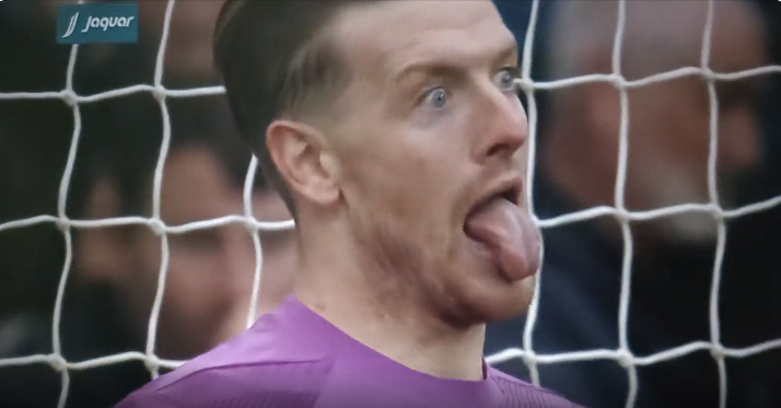 Jordan Pickford đã có hàng loạt hành động khiêu khích Erling Haaland trước khi tiền đạo của Man City đá hỏng phạt đền. |