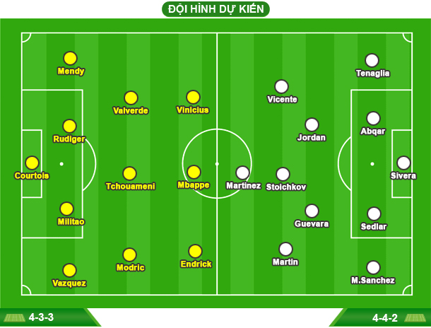 Theo Marca, trong buổi tập hôm qua, HLV Ancelotti đã thử nghiệm bộ 3 tấn công Endrick, Mbappe và Vinicius. Dù Endrick bị đau sau buổi tập, nhưng nhiều khả năng tiền đạo 18 tuổi sẽ đá chính ở trận đấu rạng sáng mai.