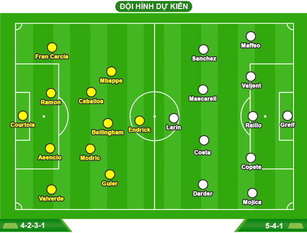REAL MADRID: Vắng Militao, Carvajal, Vazquez, Camavinga, Rudiger, Mendy, Alaba, Rodrygo và Vinicius (chấn thương); Tchouameni (bị treo giò)