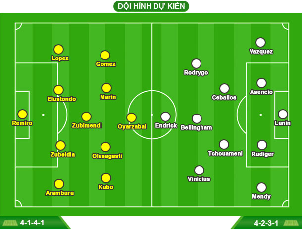 LỰC LƯỢNG - REALSOCIEDAD: Vắng Traore, Sucic, Pacheco và Aguerd (chấn thương). - REAL MADRID: Vắng Militao, Carvajal và Valverde (chấn thương); Courtois không được đăng ký. PHONG ĐỘ VÀ ĐỐI ĐẦU - Sociedad thắng 6, thua 4 trong 10 trận gần nhất trên mọi mặt trận. - Real Madrid thắng 7, hòa 2, thua 1 trong 10 trận gần nhất trên mọi đấu trường. - Sociedad thắng 1, hòa 3, thua 6 trong 10 trận gần nhất gặp Real Madrid. ![]() Real bị Sociedad loại ở cúp Nhà Vua 2019-20 Lá thăm may rủi đã khiến Sociedad và Real Madrid gặp nhau tại vòng bán kết cúp Nhà Vua. Theo lịch, vào 03h30 sáng mai (27/2), Sociedad sẽ tiếp đón Los Blancos ở trận lượt đi tại xứ Basque. Hai đội sẽ tái đấu trong trận lượt về tại Madrid vào ngày 2/4. Đối đầu thường xuyên tại La Liga nhưng đây mới là lần thứ 4 Sociedad gặp Real Madrid tại cúp Nhà Vua trong 37 năm qua. Ở mùa giải 1987-88, Sociedad từng thắng thuyết phục Real Madrid với tổng tỉ số 5-0 sau 2 lượt trận tại vòng bán kết. Ở vòng tứ kết mùa 1992-93, Real Madrid đã thua 1-4 ở trận lượt về nhưng giành vé đi tiếp với tổng tỉ số 5-4 chung cuộc nhờ chiến thắng 4-0 ở lượt đi tại Bernabeu. Trước mùa này, lần gần nhất Sociedad đối đầu Real Madrid tại cúp Nhà Vua là mùa giải 2019-20. Ở mùa giải đó, Sociedad đã thắng Real với tỉ số 4-3 ngay trên sân Bernabeu ở vòng tứ kết, sau đó vượt qua Mirandes (bán kết) và Bilbao (trận chung kết) để lên ngôi vô địch. Những dẫn chứng kể trên cho thấy Sociedad có lịch sử đối đầu tốt hơn Real Madrid tại cúp Nhà Vua. Yếu tố này, cộng với phong độ tốt trong thời gian qua (thắng 5, thua 1 trong 6 trận gần nhất) và lợi thế sân nhà (thắng 11 trong 13 trận gần nhất trên mọi đấu trường) là cơ sở để thầy trò Imanol Alguacil hi vọng giành kết quả có lợi trước trận lượt về tại Bernabeu. ![]() Sociedad thắng 5 trận sân nhà gần nhất Ngoài lịch sử đối đầu và sân bãi, Sociedad còn có lợi thế về nhân sự vì Real Madrid sẽ không có đội hình mạnh nhất ở trận đấu rạng sáng mai. Cụ thể, ở trận này, HLV Ancelotti không đăng kí thủ môn số 1 Courtois, còn tiền vệ quan trọng Valverde vắng mặt do chấn thương. Trong khi Valverde và Courtois vắng mặt, Real Madrid sẽ chào đón sự trở lại của Jude Bellingham. Như đã biết, vì bị phạt thẻ đỏ trong trận hòa Osasuna tại vòng 24, tuyển thủ Anh bị treo giò 2 trận tại La Liga (gặp Girona và Betis). Ngoài ra, Bellingham còn bị treo giò ở trận lượt đi vòng 1/8 Champions League gặp Atletico Madrid vì nhận 3 thẻ vàng. Jude Bellingham đã thụ án treo giò ở trận thắng Girona. Sau khi thi đấu trước Sociedad, cựu sao Dortmund sẽ vắng mặt trong 2 trận liên tiếp gặp Betis và Atletico. Vì thế, Bellingham sẽ bung sức và thi đấu hết mình ở trận lượt đi bán kết cúp Nhà Vua trước khi nghỉ ngơi hơn 1 tuần, rồi trở lại ở trận gặp Vallecano tại vòng 27 vào ngày 9/3. ![]() Real thắng Sociedad với tỉ số 2-0 ở trận lượt đi La Liga mùa giải này nhờ 2 cú sút penalty của Vinicius và Mbappe Không chỉ chào đón sự trở lại của Jude Bellingham, Real Madrid còn đang hưng phấn sau khi giành vé vào vòng 1/8 Champions League, và thắng thuyết phục Girona tại La Liga cuối tuần qua, sau 3 vòng sảy chân liên tiếp (thua 1, hòa 2). Tính cả 2 trận thắng Man City và Girona, Real Madrid đã nâng tổng số chiến thắng của mình trên mọi mặt trận trong năm 2025 lên con số 12. Theo Opta, đội quân của HLV Ancelotti là đội thuộc top 5 giải VĐQG hàng đầu châu Âu thắng nhiều thứ 2 trên mọi đấu trường trong năm 2025, sau PSG (13 trận). Nếu dàn sao Real Madrid thi đấu như những gì thường thể hiện trong năm nay, đặc biệt ở những cuộc đối đầu Man City và Girona mới đây, Sociedad sẽ không dễ dàng giành kết quả như ý. DỰ ĐOÁN: Hòa 2-2 ![]() |