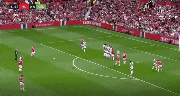 Mặc dù đã từ giã sự nghiệp sân cỏ nhiều năm nay nhưng Rooney vẫn thể hiện khả năng đá phạt ấn tượng với bàn thắng ở trận giao hữu với Celtic. |