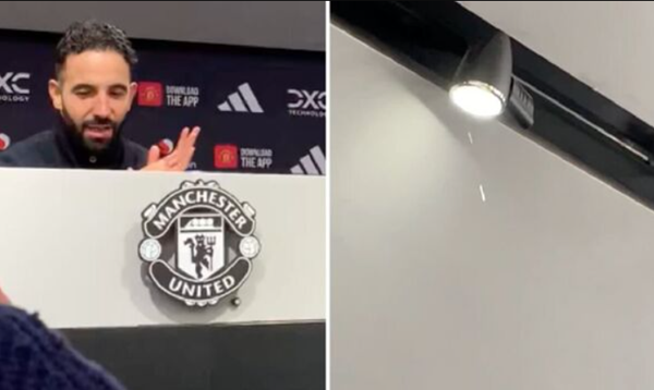 Buổi họp báo của HLV Ruben Amorim sau trận thua Bournemouth đã bị gián đoạn vì nước mưa chảy xuống từ trần nhà.