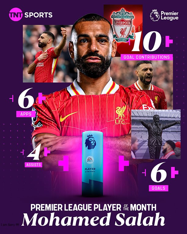 Đúng như dự đoán, Salah đã giành danh hiệu Cầu thủ xuất sắc nhất tháng 2 của Premier League. Tuyển thủ Ai Cập đã vượt qua Beto (Everton), Mateta (Crystal Palace), Minteh (Brighton), Spence (Tottenham) và Szoboszlai (Liverpool) để đoạt giải thưởng cá nhân này.