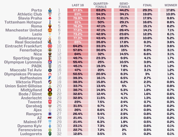 Siêu máy tính dự đoán cơ hội vô địch UEL: M.U lép vế |