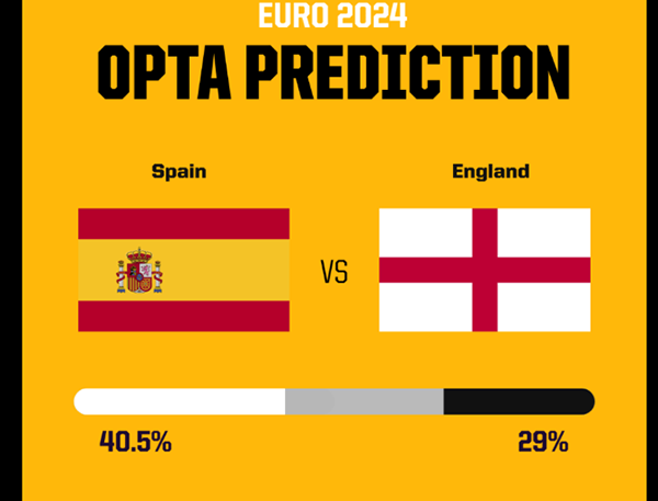 Theo siêu máy tính của Opta, Tây Ban Nha nắm cơ hội thắng cao hơn Anh ở trận chung kết EURO 2024. |
