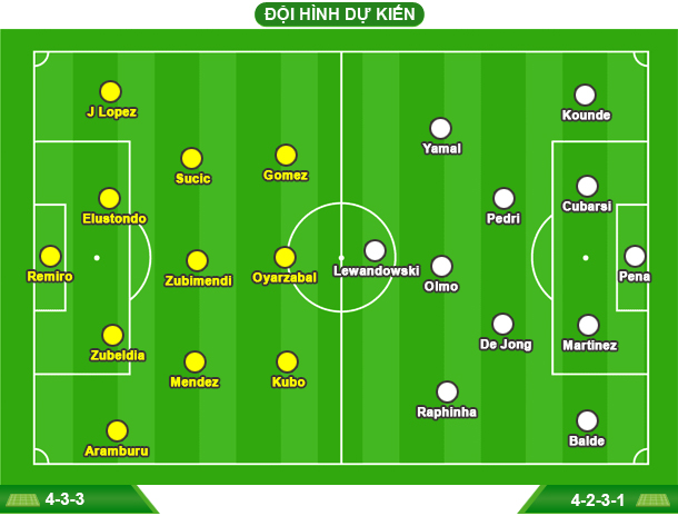 Đáng chú ý, Sociedad chỉ 6 lần lọt lưới 2 bàn/trận và chưa lần nào thủng lưới nhiều hơn 2 bàn/trận ở 16 trận tại La Liga và Europa League 2024-25. Do đó, đối đầu hàng thủ vững như bàn thạch của Sociedad có thể là thử thách lớn với Barcelona.