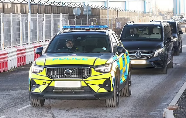 HLV Ruben Amorim đã được cảnh sát hộ tống tới đại bản doanh của Man Utd sau khi đáp chuyến bay tới Manchester. |