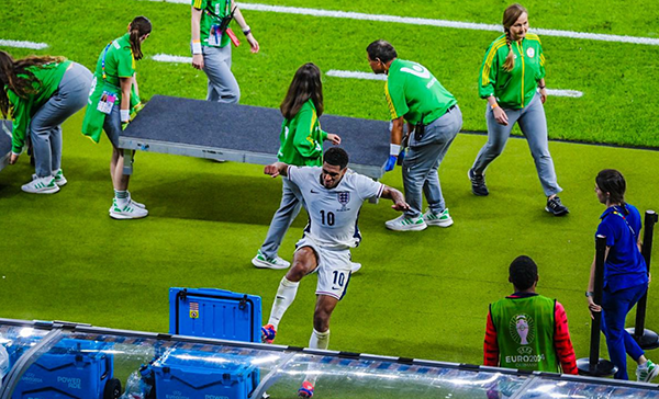 Cụ thể, thất vọng vì thất bại của đội nhà, Bellingham đã lừ lừ tiến vào cabin. Trên đường vào cabin của ĐT Anh, tiền vệ Real Madrid giận dữ đá tung thùng đựng đá bên ngoài đường pitch. Sau đó, Bellingham ngồi thừ trên hàng ghế dự bị.