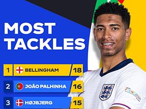 Theo UEFA, Jude Bellingham là cầu thủ tắc bóng nhiều nhất ở VCK EURO 2024 đến thời điểm này. |