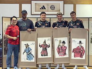 HLV Vincent Kompany và 3 cầu thủ Bayern Munich được 1 fan Hàn Quốc tặng món quà độc đáo trước khi rời Seoul. |