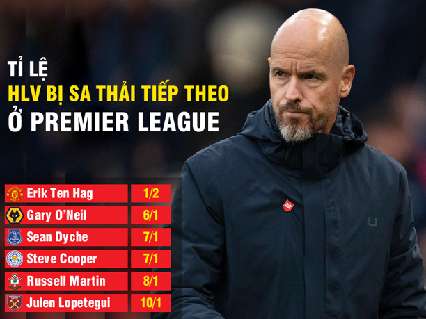 Ten Hag nguy cơ bị sa thải cao nhất Premier League |