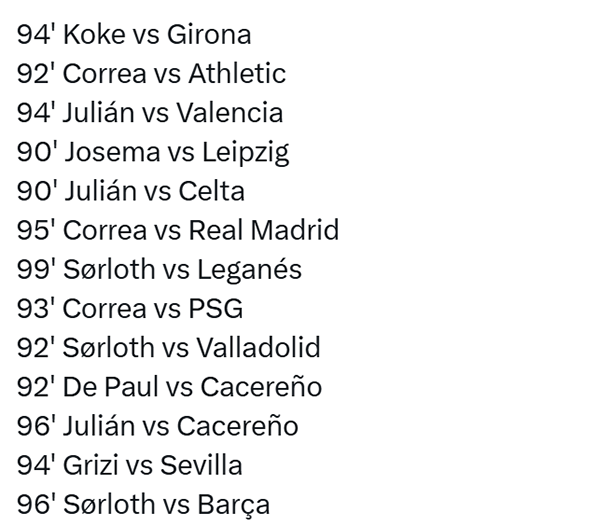 Atletico Madrid thể hiện khả năng ghi bàn đáng nể trong thời gian bù giờ trên mọi mặt trận ở mùa 2024-25. |
