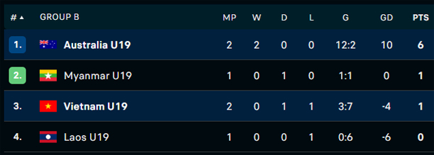 Trước đối thủ vượt trội về đẳng cấp là U19 Australia, U19 Việt Nam đã dễ dàng để thua với tỉ số 2-6. Giành vỏn vẹn 1 điểm sau 2 lượt trận, thầy trò Hứa Hiền Vinh coi như hết hi vọng tranh vé bán kết U19 Đông Nam Á. |