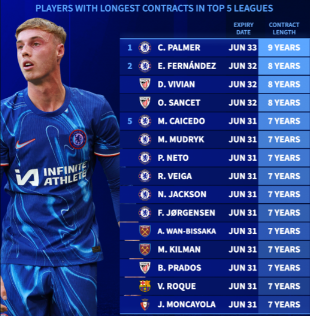 Top 10 cầu thủ có hợp đồng dài nhất: Palmer thống trị |