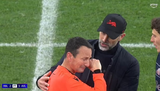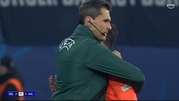 Trọng tài Giallatini khóc nức nở sau trận đấu giữa RB Leipzig và Aston Villa