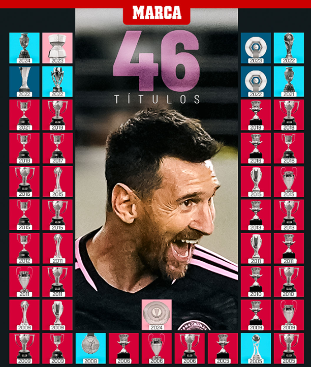 ![]() Messi tươi rói nhận giải MARCA America Theo Marca, Messi giành giải MARCA America - Cầu thủ xuất sắc nhất mọi thời đại, nhờ thành công vượt trội, đặc biệt El Pulga đoạt nhiều danh hiệu tập thể nhất lịch sử (46). Đáng chú ý, Messi đã vượt qua Cristiano Ronaldo và Vua bóng đá Pele để nhận danh hiệu do tờ báo thân Real Madrid trao tặng. Theo kết quả bình chọn, Ronaldo và Pele lần lượt đứng thứ hai và ba sau El Pulga. Ngoài Messi, Ronaldo và Pele, Marca còn vinh danh 3 cầu thủ xuất sắc nhất mọi thời đại nữa là Alfredo Di Stefano, Diego Maradona và Johan Cruyff. Alfredo Di Stefano, Diego Maradona và Johan Cruyff lần lượt xếp thứ tư, năm và sáu, sau Messi, Ronaldo và Pele trong top 6 cầu thủ vĩ đại nhất lịch sử. Hồ hởi sau khi được tôn vinh là GOAT (Greatest Of All Time), Messi nói: “Cảm ơn Chúa, tôi có thể nói rằng tôi đã đạt được mọi ước mơ trong bóng đá. Giấc mơ lớn nhất của tôi là vô địch World Cup. Tôi đã giành được mọi thứ cho câu lạc bộ của đời mình là Barcelona, tôi cũng đã đoạt được các danh hiệu ở PSG. Tôi không thể đòi hỏi bất cứ điều gì khác nữa". Cũng trong cuộc phỏng vấn với Marca, Messi thổ lộ rất hạnh phúc tại Inter Miami. Tiền đạo 37 tuổi nói: “ĐT Argentina và Barcelona là gia đình của tôi. Tôi cũng rất hạnh phúc tại Inter Miami, một chương mới trong sự nghiệp của tôi”. Ngoài ra, Messi còn bóng gió cho hay ngày anh giải nghệ đang đến gần, đồng thời bỏ ngỏ khả năng sẽ dự World Cup 2026 cùng ĐT Argentina. Messi là cầu thủ thành công nhất lịch sử (giành 46 danh hiệu) ![]() ![]() |