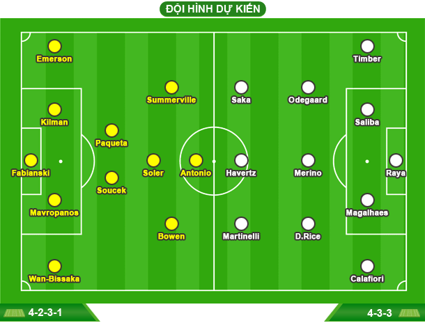 LỰC LƯỢNG - WEST HAM: Vắng Niclas Fullkrug, Jean-Clair Todibo (chấn thương) và Mohammed Kudus (treo giò). - ARSENAL: Vắng Ben White và Takehiro Tomiyasu (chấn thương); Khả năng ra sân của Gabriel Magalhaes còn bỏ ngỏ. PHONG ĐỘ VÀ ĐỐI ĐẦU - West Ham chỉ thua 1/4 vòng đấu gần nhất ở Premier League (thắng 2, hòa 1, thua 1). - Arsenal chỉ thắng 1/5 vòng đấu gần nhất ở Premier League (thắng 1, hòa 2, thua 2). - Arsenal chỉ thua 1/10 màn đụng độ West Ham gần nhất ở Premier League (thắng 7, hòa 2, thua 1). ![]() Trong giai đoạn từ giữa tháng 10 đến giữa tháng 11, Arsenal thể hiện màn trình diễn rất thất vọng ở Premier League với chuỗi 4 trận liên tiếp chỉ biết hòa và thua. Pháo thủ không còn được đánh giá cao trong cuộc đua vô địch khi bị đội đầu bảng Liverpool bỏ cách 9 điểm. Theo đánh giá của Opta, cơ hội đăng quang của thầy trò Mikel Arteta chỉ là 9,85%, kém xa Liverpool (79,96%). Dù vậy, mùa giải mới chỉ đi qua khoảng 1/3 chặng đường, vẫn còn quá sớm để đưa ra dự đoán. Điều quan trọng là Arsenal đã biết đứng dậy đúng lúc để tiếp tục cuộc đua. Sở dĩ nói vậy bởi sau đợt tập trung ĐTQG trong tháng 11, Arsenal đã trở lại với diện mạo rất khác. Ở vòng đấu trước, họ đã dễ dàng đè bẹp Nottingham với tỉ số 3-0. Sau đó ít ngày, Pháo thủ tiếp tục bùng nổ với chiến thắng tưng bừng 5-1 trên sân của Sporting ở lượt trận thứ 5 vòng xếp hạng Champions League. Qua 2 trận đấu, Arsenal đã ghi 8 bàn thắng và chỉ 1 lần để lọt lưới. Đây chính là hình ảnh mà HLV Arteta muốn thấy sau cuộc khủng hoảng mini. Chia sẻ trước trận derby London với West Ham, nhà cầm quân người Tây Ban Nha cho rằng Arsenal cần thể hiện màn trình diễn hoàn hảo mới có hi vọng bắt kịp Liverpool trong cuộc đua vô địch. Trước mắt, ở vòng 13 cuối tuần này, cơ hội thuộc về Arsenal bởi tại Anfield, Liverpool sẽ phải chạm trán nhà ĐKVĐ Man City. Dù trận chiến tại Anfield kết thúc với tỉ số nào, Pháo thủ cũng sẽ hưởng lợi, tất nhiên với điều kiện họ vượt qua West Ham ở trận derby đêm nay. ![]() Arsenal đang trên đà hồi sinh mạnh mẽ với 2 chiến thắng liên tiếp 3 điểm là mục tiêu tối quan trọng với Arsenal ở vòng đấu cuối tuần này. Thầy trò Arteta có thể kì vọng kết quả tốt bởi nhiều lí do. Thứ nhất, họ đã và đang thể hiện sự hồi sinh rõ rệt cả về tinh thần và lối chơi. Hai trận thắng Nottingham và Sporting vừa qua là 2 trận đấu Pháo thủ chơi hiệu quả nhất ở mùa giải này, cả trong tấn công và phòng ngự. Sự trở lại của tiền vệ đội trưởng Martin Odegaard rõ ràng đã tạo ra sự khác biệt lớn cho hàng công của Arsenal. Không chỉ là thủ lĩnh trên sân, tiền vệ người Na Uy còn mang lại sự sáng tạo cho hàng tấn công, giúp Bukayo Saka bùng nổ hơn. Ở hàng thủ, Arsenal mất Ben White nhưng bộ đôi Calafiori - Timber đã trở lại với nền tảng thể lực sung mãn nhất. Trong khi đó, ở tuyến giữa, Merino đã dần thích nghi với lối chơi của Arsenal, giúp Arteta tạo nên chất thép ở khu trung tuyến. Thứ hai, Arsenal vẫn được coi là “ông vua derby London”. Theo thống kê, từ mùa giải 2022-23 tới nay, qua 26 trận derby thủ đô ở Premier League, Pháo thủ chỉ thua vỏn vẹn 2 trận. Cá nhân Bukayo Saka đã in dấu giày trong 28 bàn thắng ở các trận derby London. Và thứ ba, ở mùa giải này, West Ham chưa thể hiện được nhiều như kì vọng. The Hammers đã tăng cường lực lượng đáng kể và bổ nhiệm HLV Julen Lopetegui nhưng hiện tại đang đứng thứ 14 trên BXH với 15 điểm. Búa tạ đã hơn 1 lần cân nhắc sa thải nhà cầm quân người Tây Ban Nha. Vấn đề đáng lo ngại nhất của Arsenal là phong độ không tốt trên sân khách. Họ chỉ biết hòa và thua ở 4 trận xa nhà gần nhất tại Premier League (hòa 2, thua 2). Đây là chuỗi trận sân khách tệ nhất của Pháo thủ kể từ chuỗi 7 trận không thắng từ 12/2019 tới 6/2020. ![]() Ở Premier League mùa trước, Arsenal đã giành chiến thắng 6-0 trên sân của West Ham Ở vòng đấu trước, West Ham đã bất ngờ giành chiến thắng 2-0 trên sân của Newcastle. Đây là trận thứ 2 liên tiếp The Hammers giữ sạch lưới ở Premier League. Và nhìn xa hơn, thầy trò Lopetegui chỉ thua 1/4 vòng đấu gần nhất (thắng 2, hòa 1, thua 1). Vì vậy, Arsenal không thể chủ quan ở trận derby đêm nay. Nhưng bù lại, Arsenal tràn đầy tự tin. Ngoài tinh thần hưng phấn, Pháo thủ còn nhận được sự ủng hộ từ quá khứ. Cụ thể, trong 10 màn đụng độ West Ham gần nhất ở Premier League, đội bóng Bắc London đã giành 7 chiến thắng và chỉ để thua duy nhất 1 trận. Đặc biệt, ở mùa giải trước, thầy trò Mikel Arteta đã giành chiến thắng hủy diệt 6-0 trên sân của West Ham. Trong lịch sử giải đấu, Arsenal chính là đội bóng khiến The Hammers phải nếm nhiều thất bại nhất (36 lần). DỰ ĐOÁN: Arsenal thắng 3-1 ![]() KẾT QUẢ VÀ LỊCH THI ĐẤU VÒNG 13 PREMIER LEAGUE