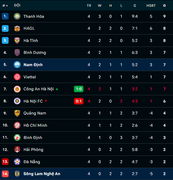 Sau 2 tuần nhường chỗ cho loạt trận quốc tế, V-League đã trở lại ở vòng 4, với 1 trong những trận cầu đáng chú ý nhất là cuộc so tài giữa Nam Định và SLNA. Với ưu thế sân nhà và dàn sao chất lượng hơn, nhà ĐKVĐ dễ dàng giành chiến thắng áp đảo với tỉ số 4-1, qua đó leo lên vị trí thứ 5 trên BXH.