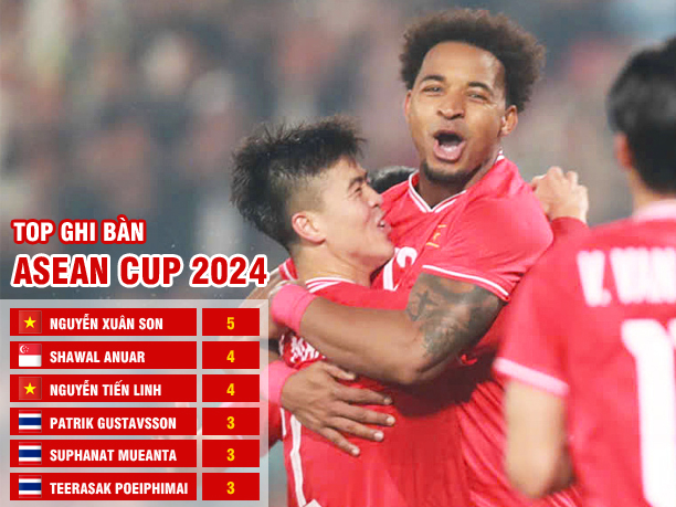 Với cú đúp vào lưới Singapore, tiền đạo Xuân Son đã vươn lên dẫn đầu cuộc đua Vua phá lưới ASEAN Cup 2024. |