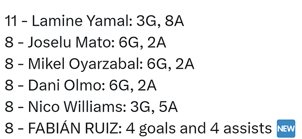 Yamal là vua ghi bàn + kiến tạo cho TBN thời De la Fuente |