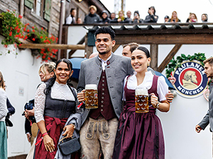 Cầu thủ chạy cánh Luis Diaz và bà xã Gera Ponce đã thu hút sự chú ý tại lễ hội bia Oktoberfest diễn ra ở Munich.